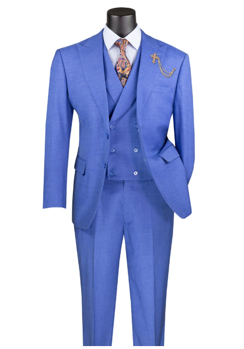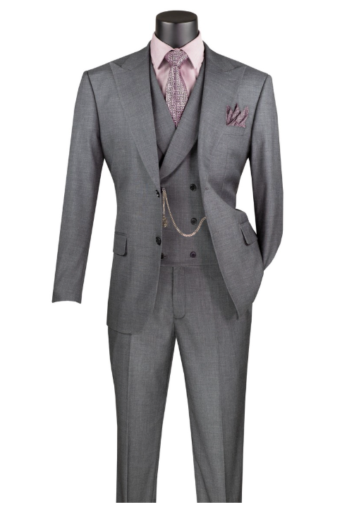 Vinci Modern Fit Vested Suit with Peak Lapel Fancy Vest with Stretch Fabric Adjustable Waist Band