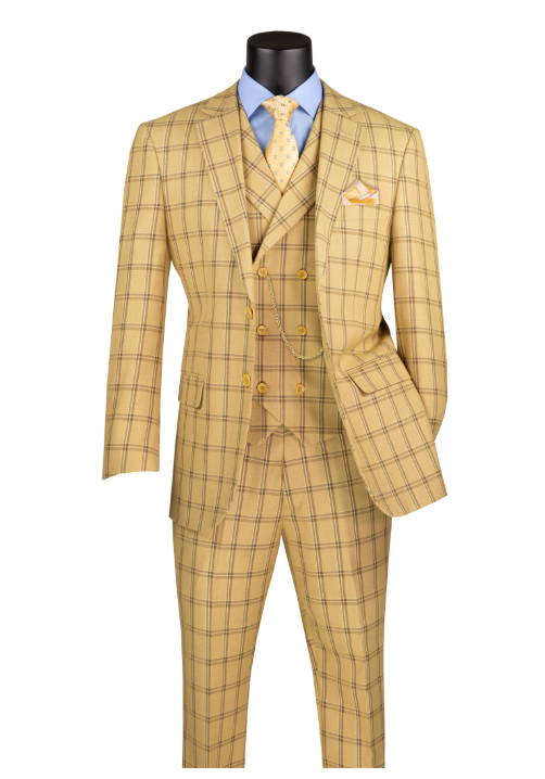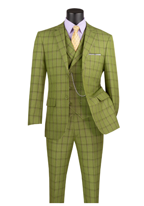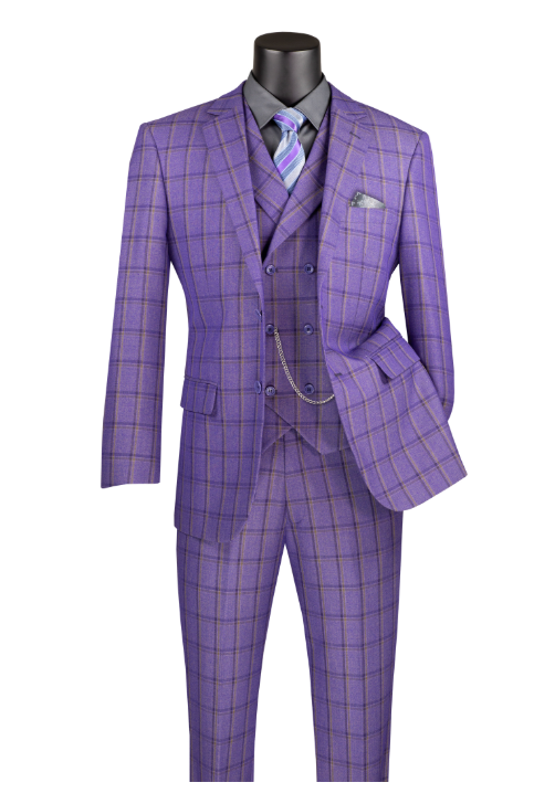 Vinci Modern Fit 3 pcs Notch Lapel Suits for Men with Fancy Vest Style