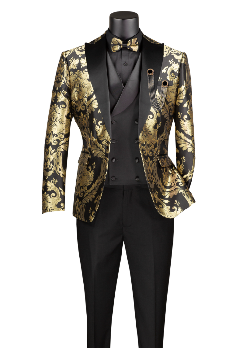 Vinci Modern Fit 3 pcs Suits for Men with Matching Bow Tie Luxurious Jacquard Fabric