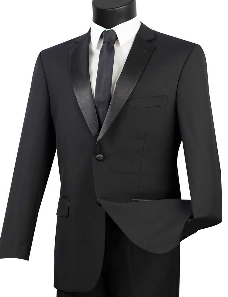 Vinci Tuxedo Collection 2 Buttons Regular Fit Flat Front Sateen Trimmed Pants